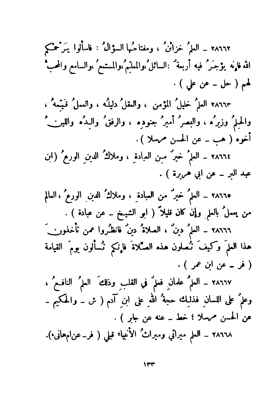 28668- "العلم ميراثي وميراث الأنبياء قبلي". "فر" عن أم هانئ.