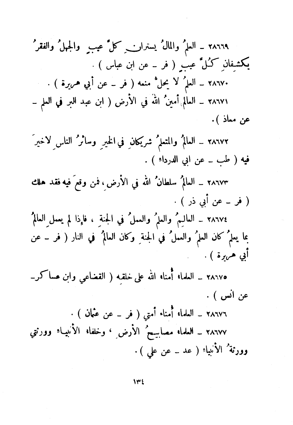 28677- "العلماء مصابيح الأرض، وخلفاء الأنبياء وورثتي وورثة الأنبياء". "عد" عن علي.