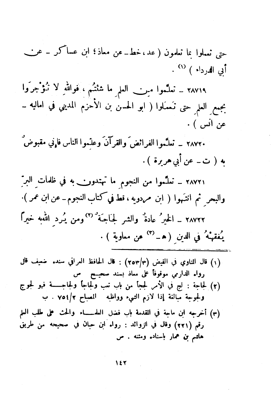 28722- "الخير عادة والشر لجاجة2 ومن يرد الله به خيرا يفقهه في الدين. "هـ"3 عن معاوية.
