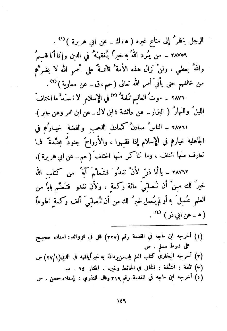 28762- "يا أبا ذر لأن تغدو فتعلم آية من كتاب الله خير لك من أن تصلي مائة ركعة، ولأن تغدو فتعلم بابا من العلم عمل به أو لم يعمل خير لك من أن تصلي ألف ركعة تطوعا. "هـ" عن أبي ذر4.
