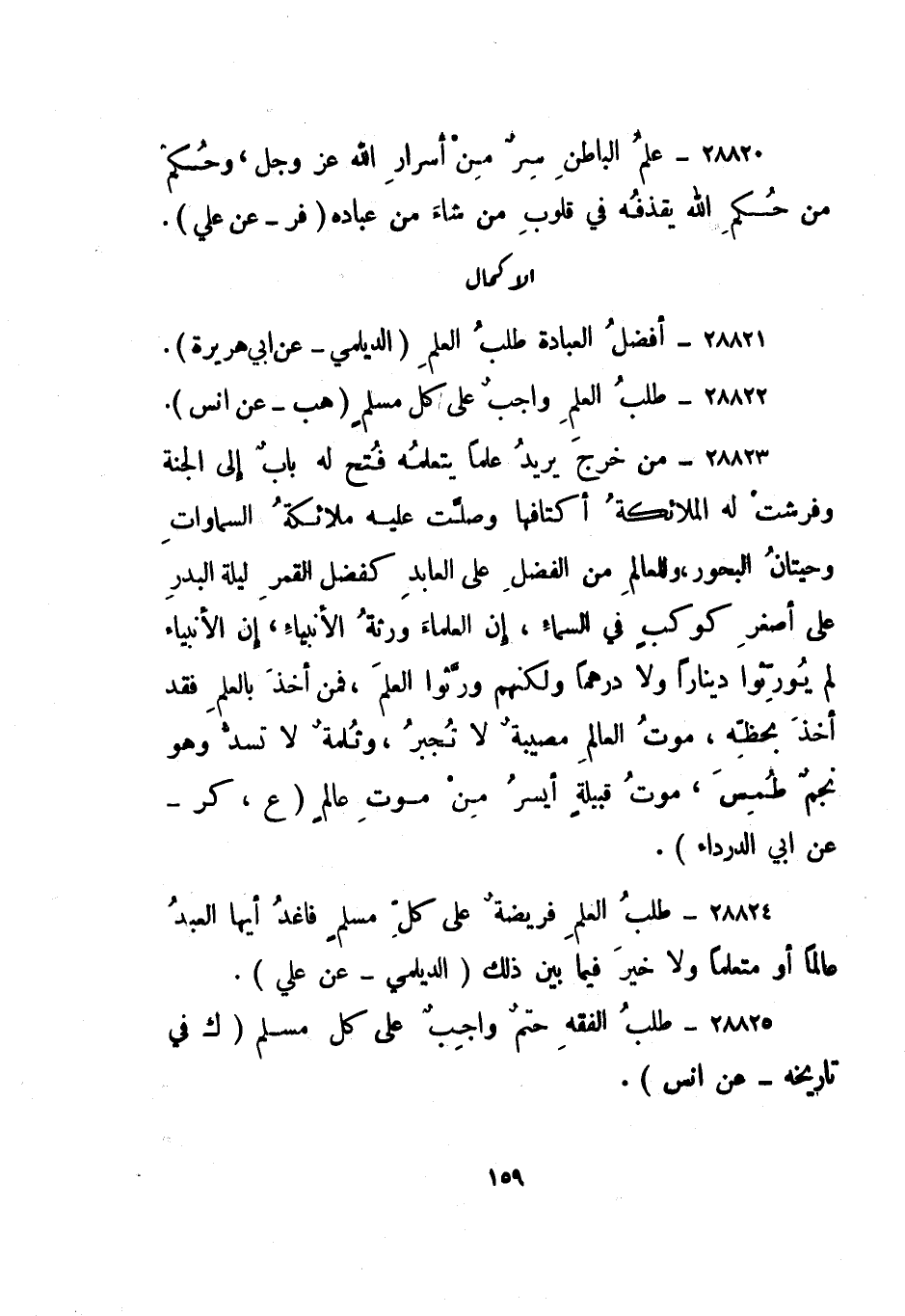 28824- " طلب العلم فريضة على كل مسلم فاغد أيها العبد عالما أو متعلما ولا خير فيما بين ذلك". الديلمي - عن علي.