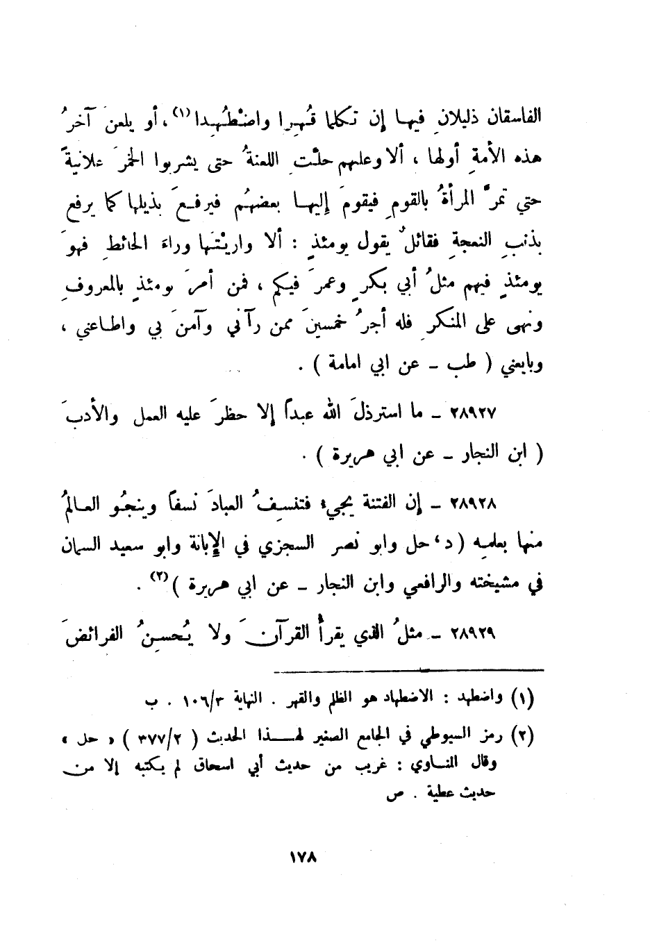 28928- "إن الفتنة يجيء فتنسف العباد نسفا وينجو العالم منها بعلمه". "د، حل" وأبو نصر السجزي في الإبانة وأبو سعيد السمان في مشيخته والرافعي وابن النجار - عن أبي هريرة2.
