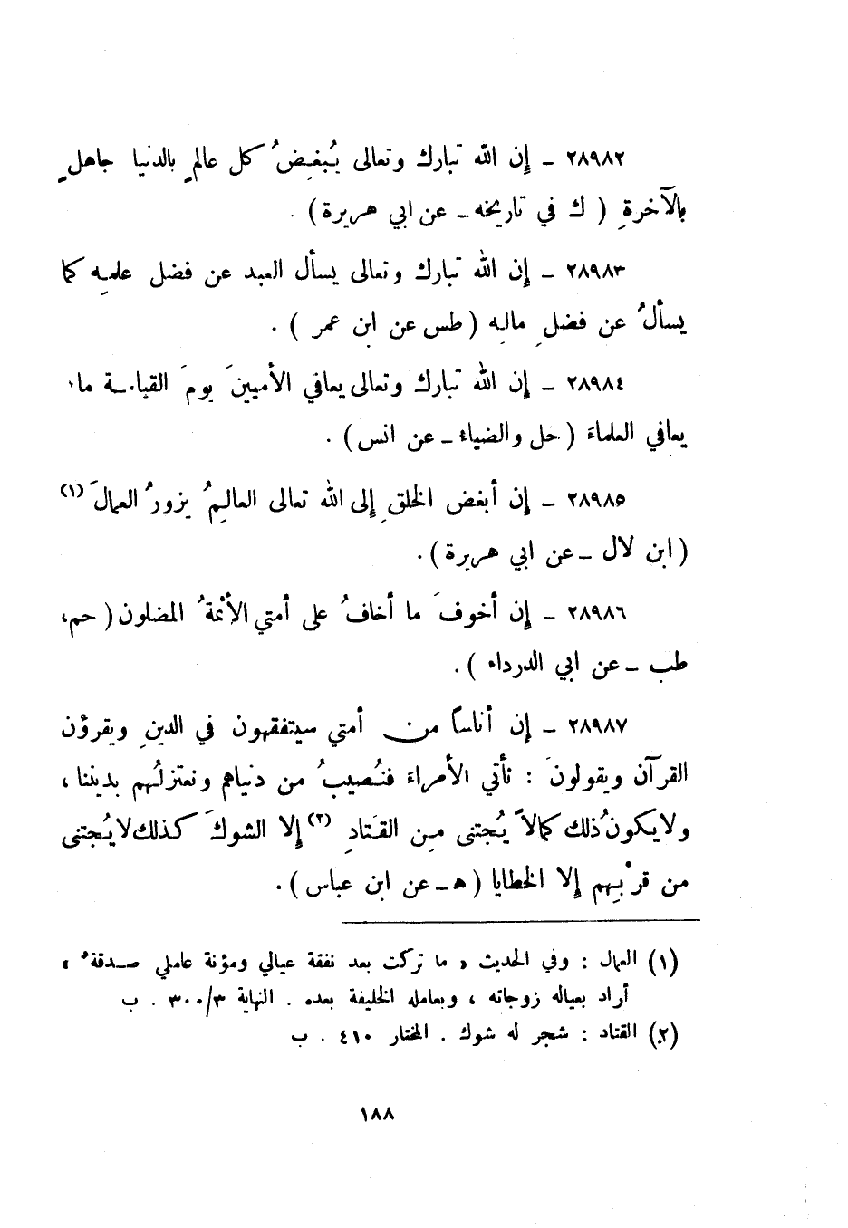 28987- "إن أناسا من أمتي سيتفقهون في الدين ويقرؤون القرآن ويقولون: نأتي الأمراء فنصيب من دنياهم ونعتزلهم بديننا، ولا يكون ذلك كمالا يجتنى من القتاد2 إلا الشوك كذلك لا يجتنى من قربهم إلا الخطايا. "هـ" عن ابن عباس.