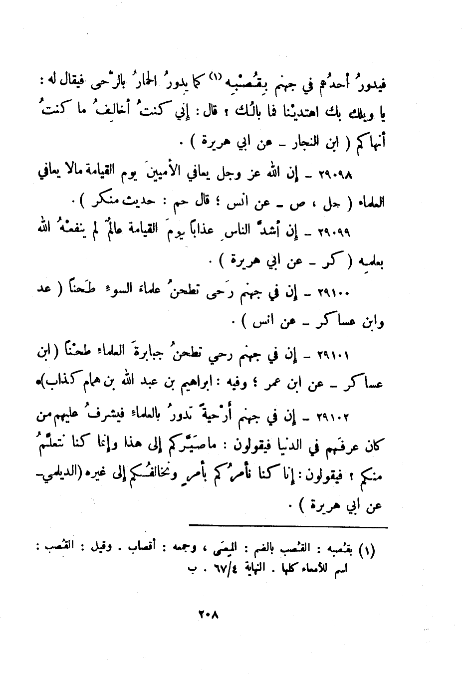 29100- "إن في جهنم رحى تطحن علماء السوء طحنا". "عد" وابن عساكر - عن أنس.