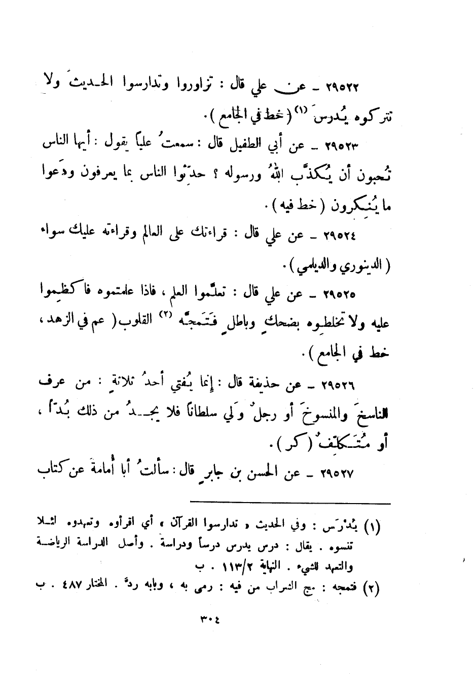 29522- عن علي قال: تزاوروا وتدارسوا الحديث ولا تتركوه يدرس1 "خط" في الجامع.