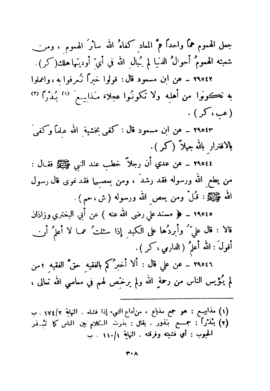 29542- عن ابن مسعود قال: قولوا خيرا تعرفوا به، واعملوا به تكونوا من أهله ولا تكونوا عجلاء مذاييع1 بذرا2 "عب، كر".