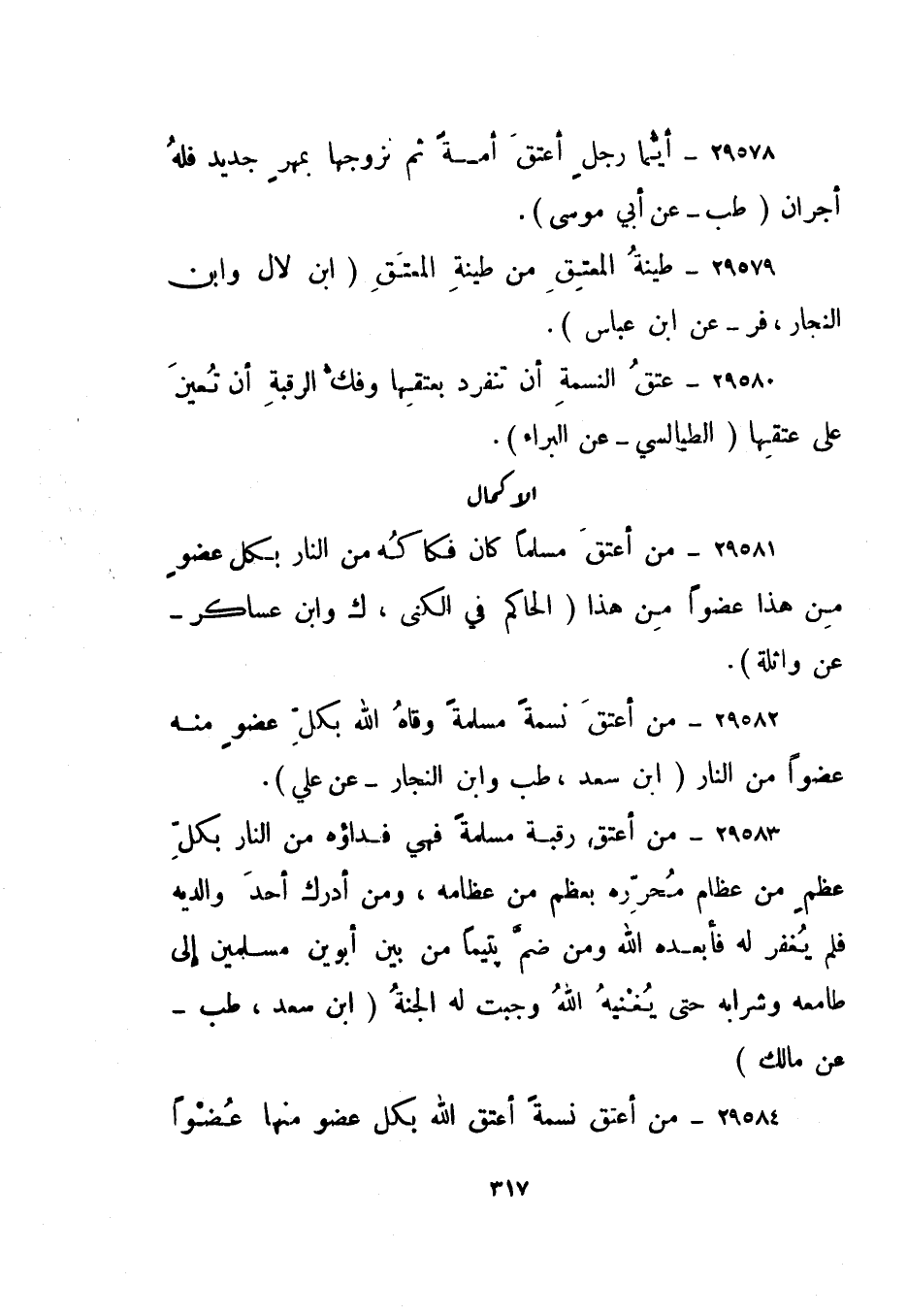 29584- "من أعتق نسمة أعتق الله بكل عضو منها عضوا