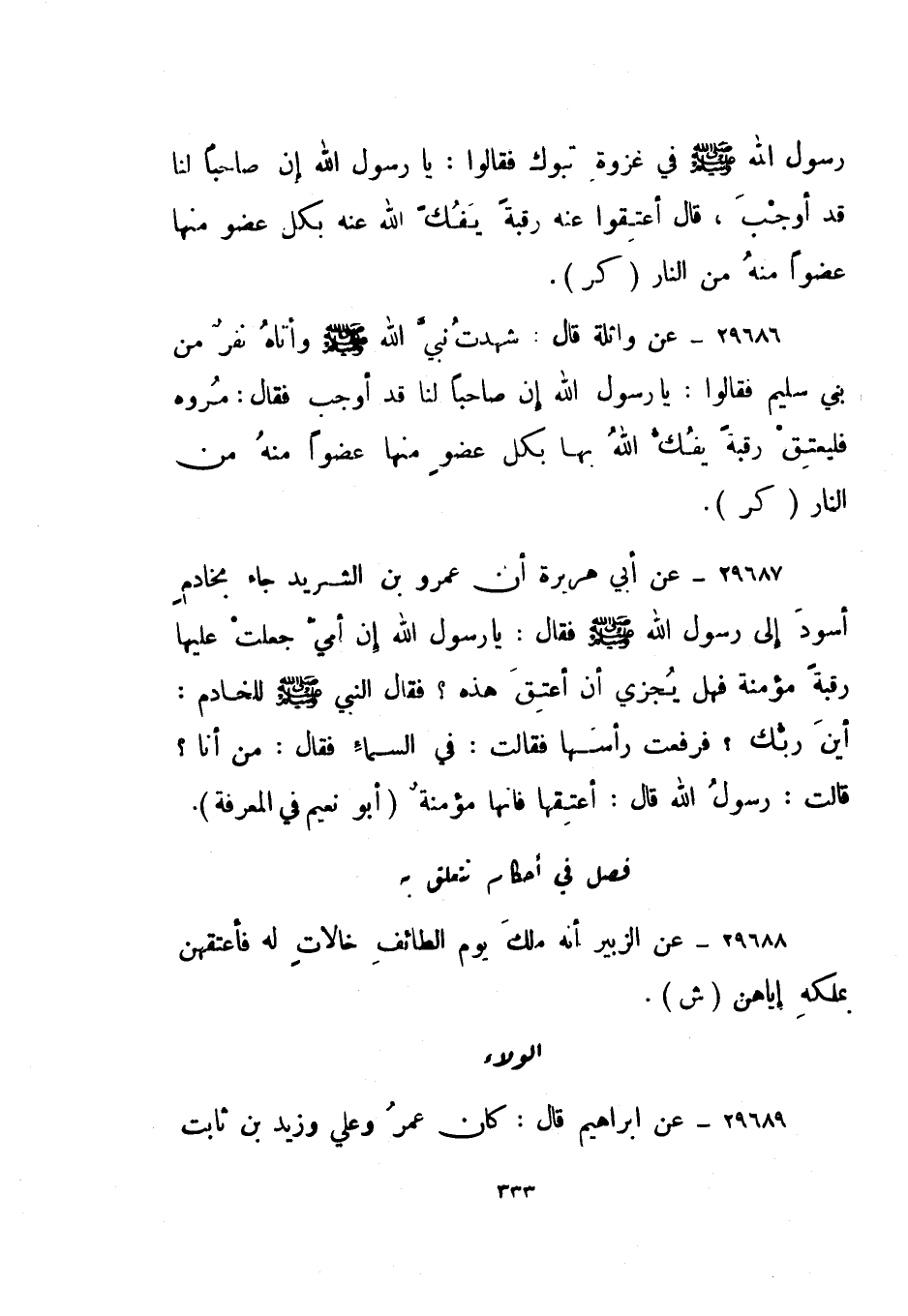 29688- عن الزبير أنه ملك يوم الطائف خالات له فأعتقهن بملكه إياهن. "ش".