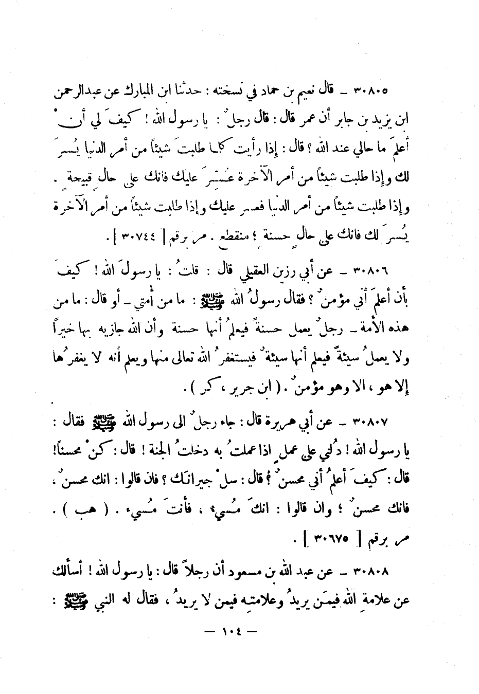 30807- عن أبي هريرة قال: جاء رجل إلى رسول الله صلى الله عليه وسلم فقال: يا رسول الله! دلني على عمل إذا عملت به دخلت الجنة! قال: كن محسنا! قال: كيف أعلم أني محسن؟ قال: سل جيرانك؟ فإن قالوا: إنك محسن، فإنك محسن؛ وإن قالوا: إنك مسيء، فأنت مسيء. "هب". مر برقم [30675] .