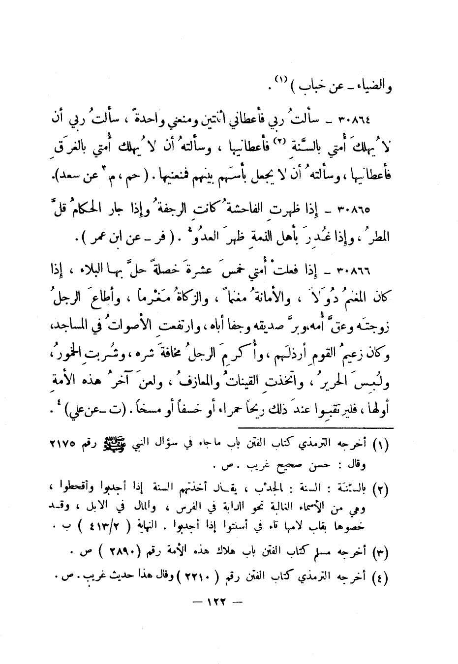 4أخرجه الترمذي كتاب الفتن رقم (2210) وقال هذا حديث غريب. ص