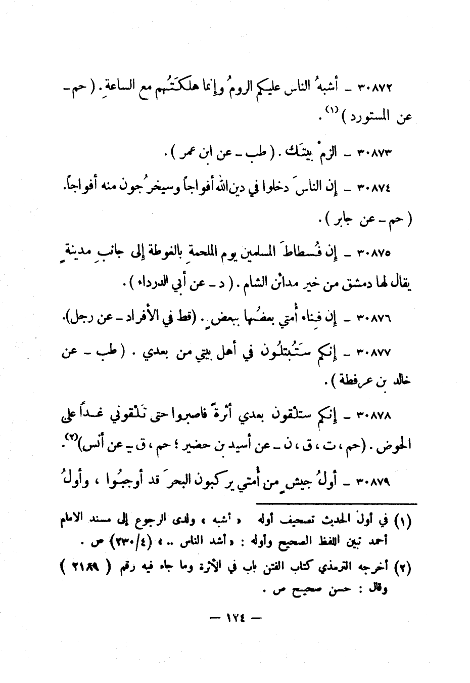 30872- أشبه الناس عليكم الروم وإنما هلكتهم مع الساعة. "حم - عن المستورد"1.