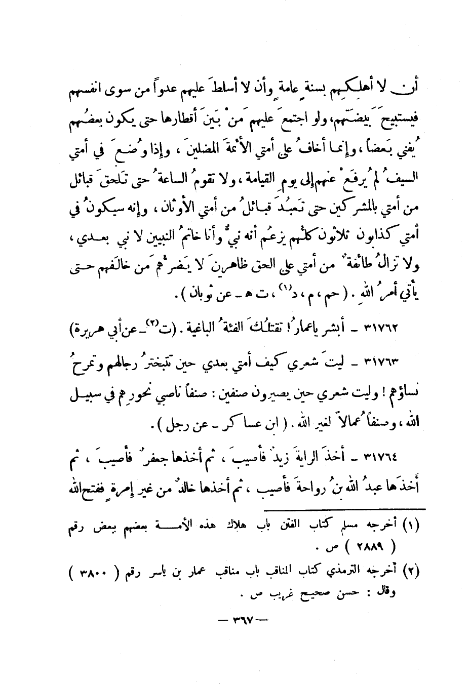 1 أخرجه مسلم كتاب الفتن باب هلاك هذه الأمة بعضهم ببعض رقم "2889" ص.