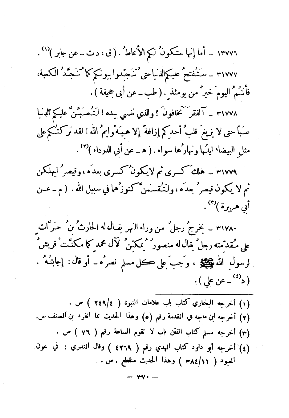 31777- ستفتح عليكم الدنيا حتى تنجدوا بيوتكم كما تنجد الكعبة، فأنتم اليوم خير من يومئذ. "طب - عن أبي جحيفة".