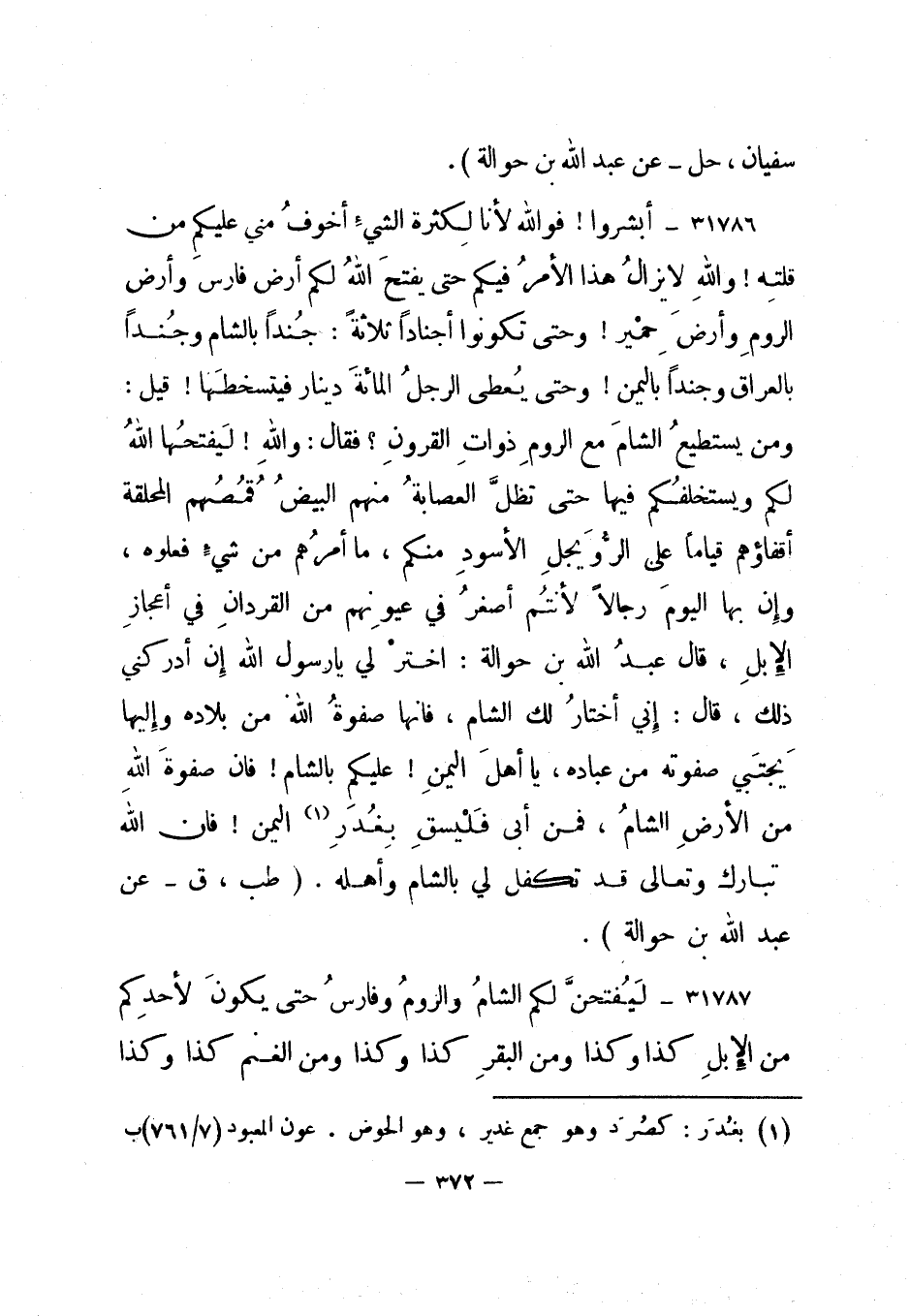 31787- ليفتحن لكم الشام والروم وفارس حتى يكون لأحدكم من الإبل كذا وكذا ومن البقر كذا وكذا ومن الغنم كذا وكذا