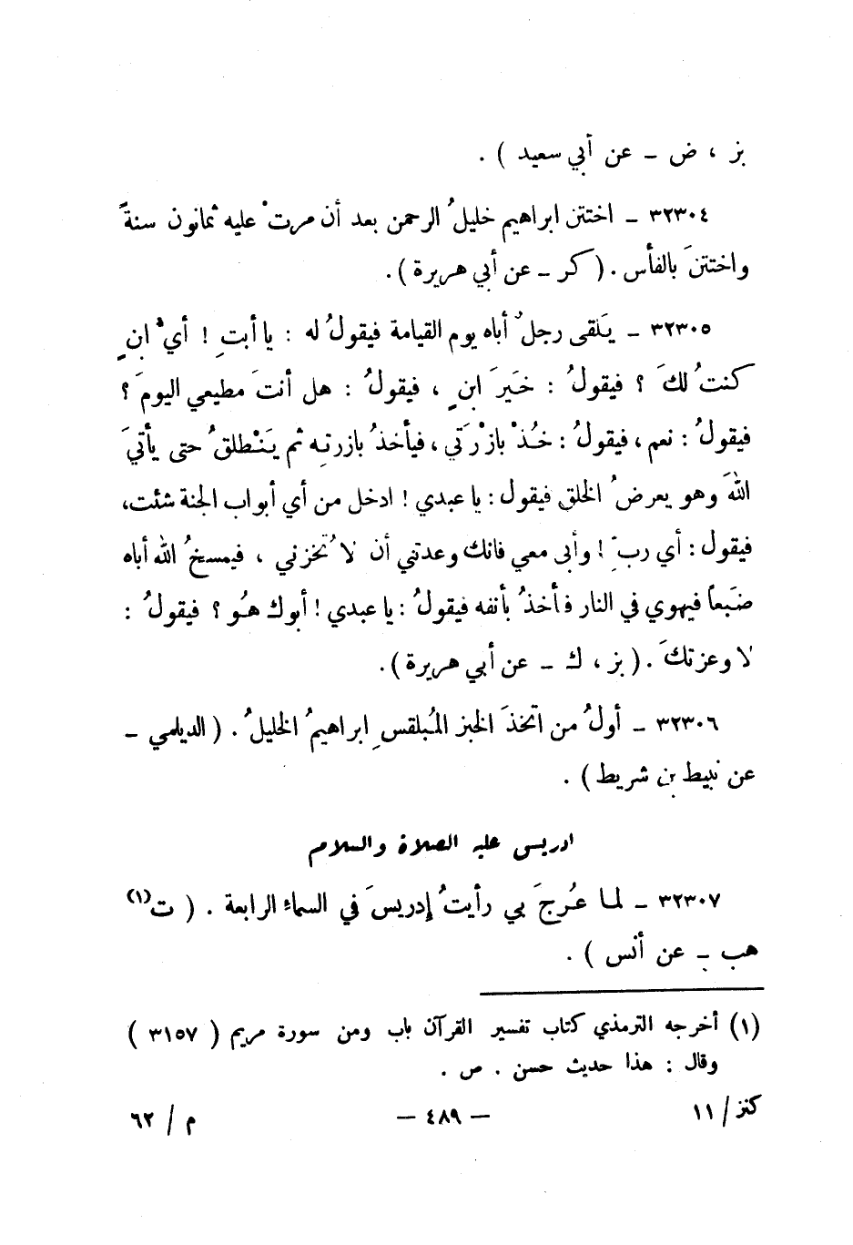 32307- لما عرج بي السماء رأيت إدريس في السماء الرابعة. "ت 1 هب - عن أنس".