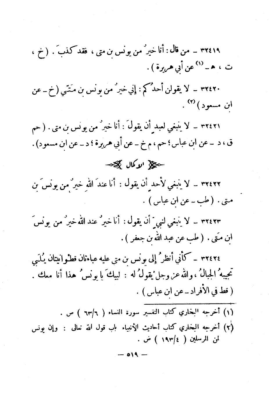 32420- لا يقولن أحدكم: إني خير من يونس بن متي. "خ - عن ابن مسعود"2.