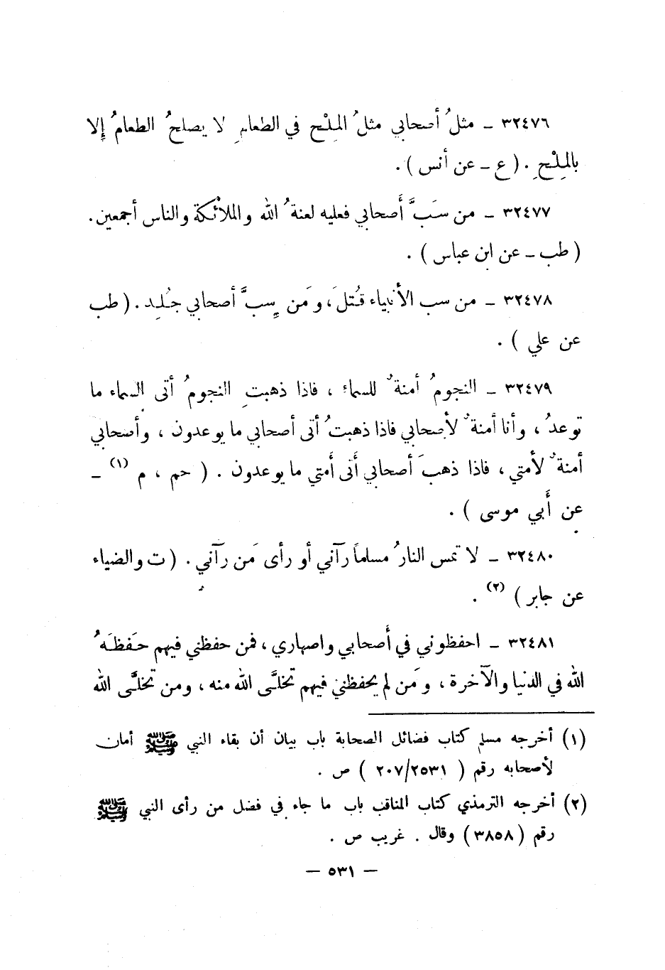 32480- لا تمس النار مسلما رآني أو رأى من رآني. "ت والضياء عن جابر"2.