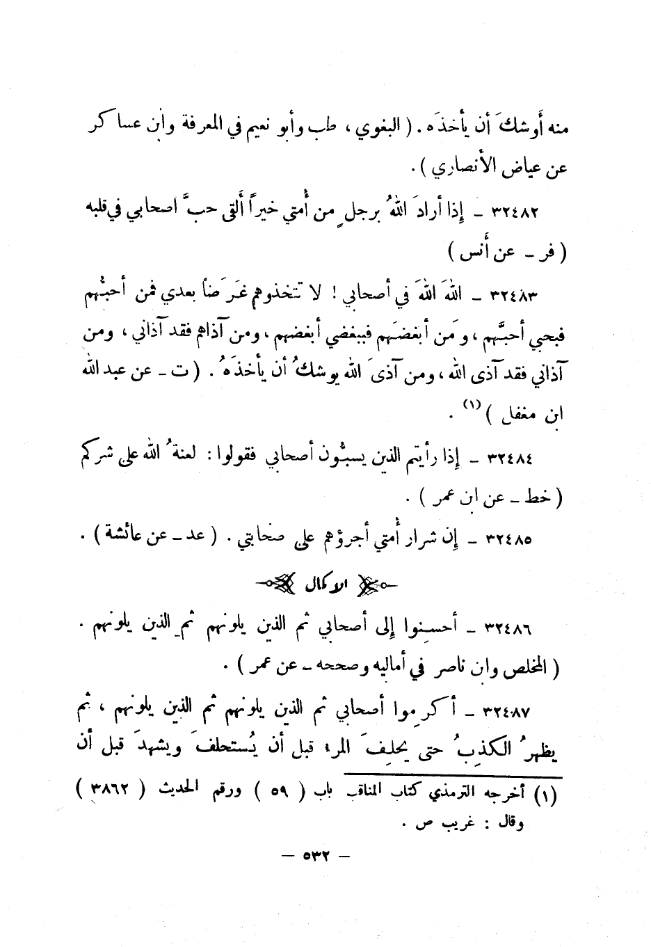 32485- إن شرار أمتي أجرؤهم على صحابتي. "عد - عن عائشة".