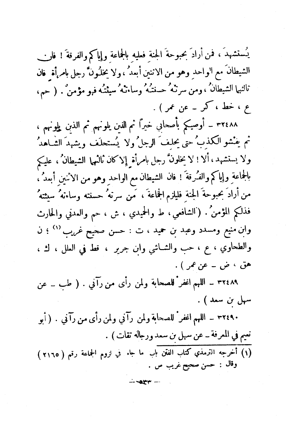 1 أخرجه الترمذي كتاب الفتن باب ما جاء في لزوم الجماعة رقم "2165" وقال: حسن صحيح غريب ص.