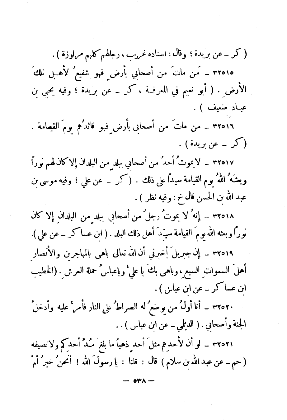 32518- إنه لا يموت رجل من أصحابي ببلد من البلدان إلا كان نورا وبعثه الله يوم القيامة سيد أهل ذلك البلد. "ابن عساكر - عن علي".
