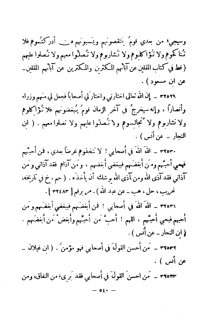 32532- من أحسن القول في أصحابي فهو مؤمن. "ابن غيلان - عن أنس".