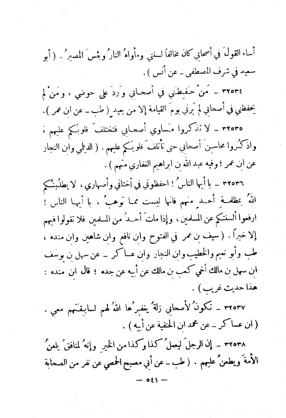 32534- من حفظني في أصحابي ورد على حوضي، ومن لم يحفظني في أصحابي لم يرني يوم القيامة إلا من بعيد. "طب - عن ابن عمر".