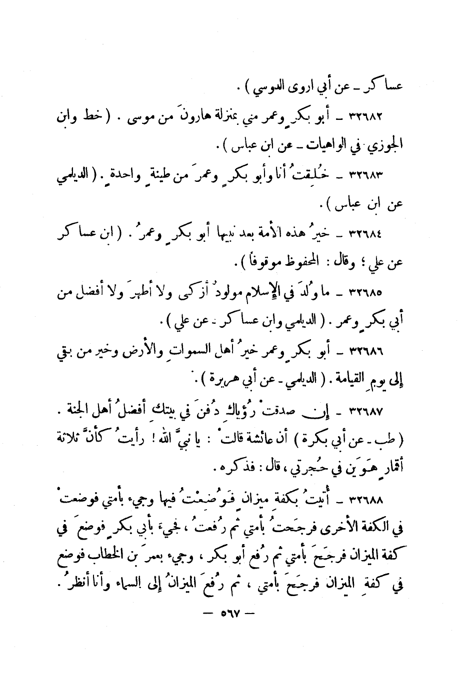 32683- خلقت أنا وأبو بكر وعمر من طينة واحدة. "الديلمي عن ابن عباس".