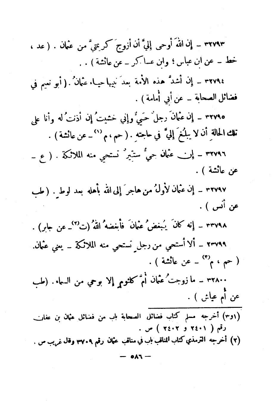 32799- ألا أستحي من رجل تستحي منه الملائكة - يعني عثمان. "حم، م 1 - عن عائشة".