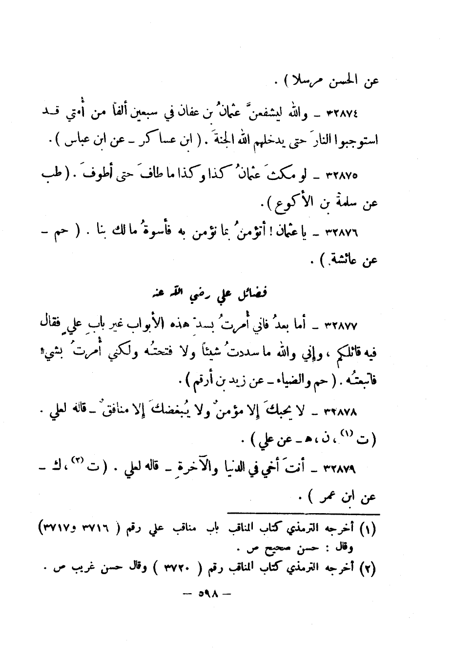 1 أخرجه الترمذي كتاب المناقب باب مناقب علي رقم "3716 و 3717" وقال: حسن صحيح ص.
