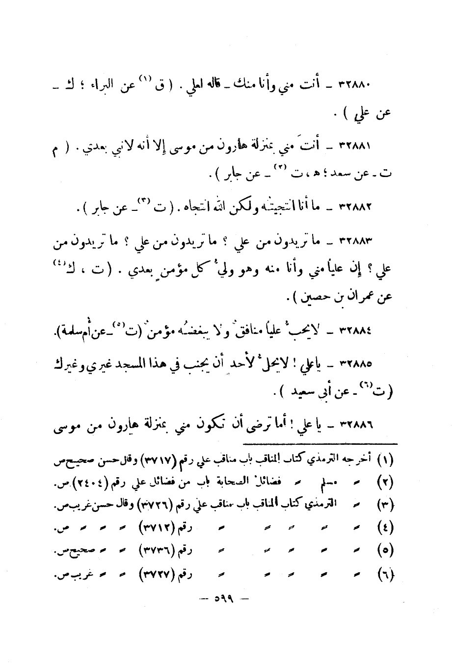 32883- ما تريدون من علي؟ ما تريدون من علي؟ ما تريدون من علي؟ إن عليا مني وأنا منه وهو ولي كل مؤمن بعدي. "ت، ك 4 عن عمران بن حصين".