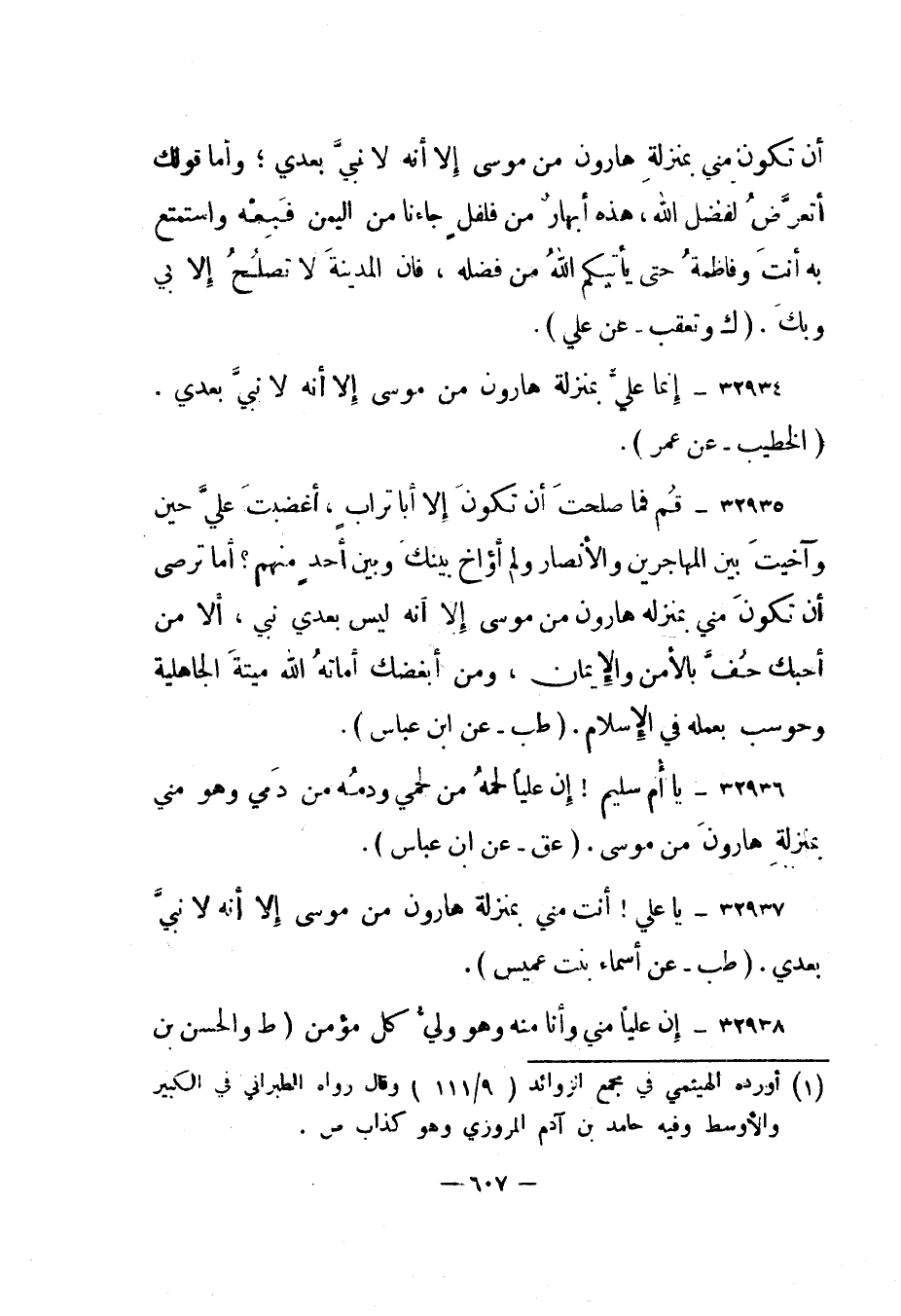 32937- يا علي! أنت مني بمنزلة هارون من موسى إلا أنه لا نبي بعدي. "طب - عن أسماء بنت عميس".
