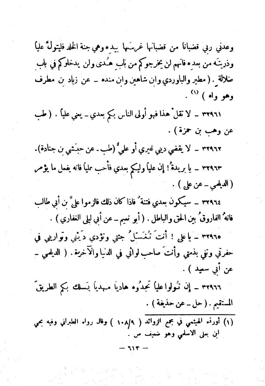 32966- إن تولوا عليا تجدوه هاديا مهديا يسلك بكم الطريق المستقيم. "حل - عن حذيفة".