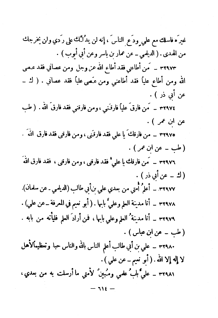 32977- أعلم أمتي من بعدي علي بن أبي طالب. "الديلمي - عن سلمان".