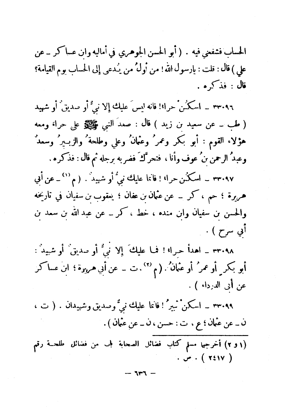 33099- اسكن ثبير! فإنما عليك نبي وصديق وشهيدان. "ت، ن - عن عثمان؛ ع، ت: حسن، ن - عن عثمان".