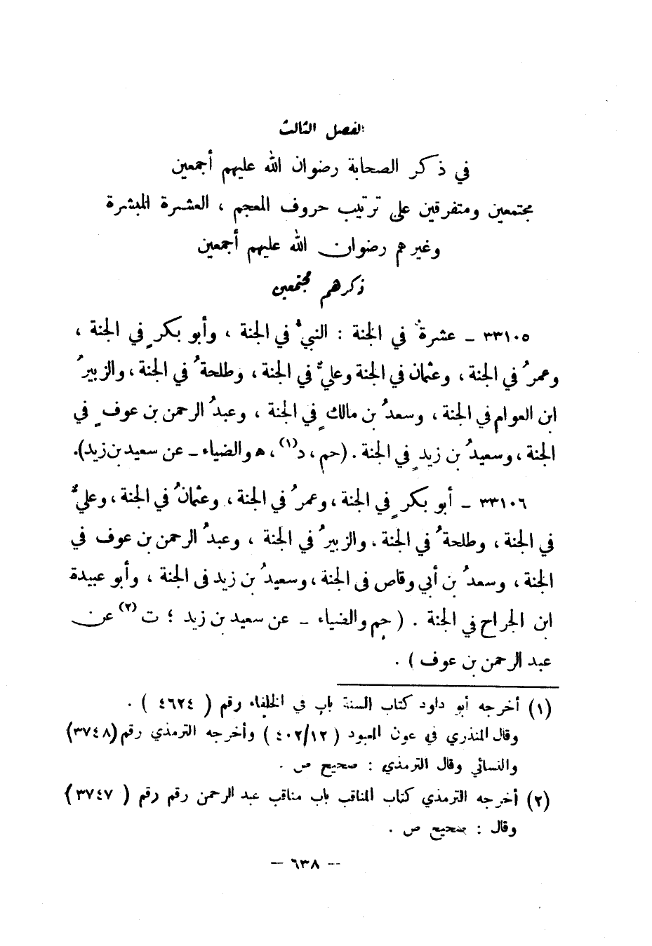 الفصل الثالث: في ذكر الصحابة رضوان الله عليهم أجمعين مجتمعين ومتفرقين على ترتيب حروف المعجم، العشرة المبشرة وغيرهم رضوان الله عليهم أجمعين