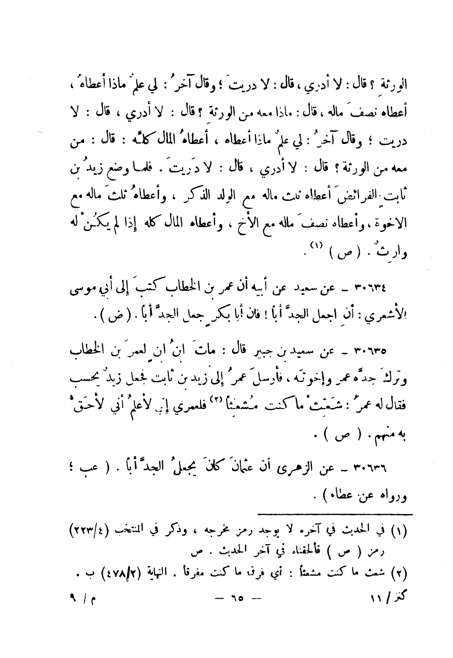 30635- عن سعيد بن جبير قال: مات ابن لعمر بن الخطاب وترك جده عمر وإخوته، فأرسل عمر إلى زيد بن ثابت فجعل زيد يحسب فقال له عمر: شعث ما كنت مشعثا 2 فلعمري إني لأعلم أني لأحق به منهم. "ص".