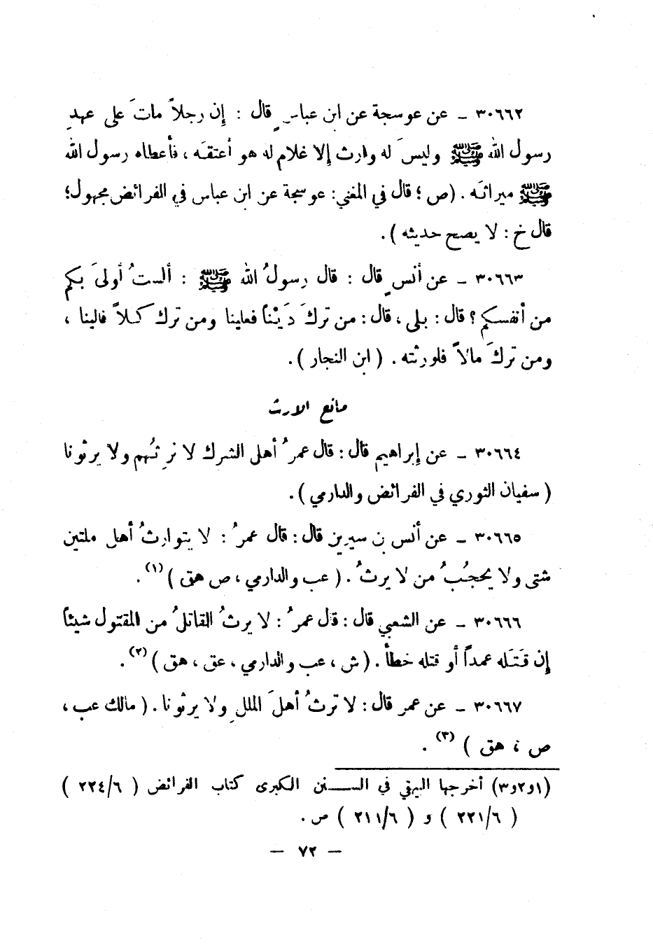 1 أخرجه البيهقي في السنن الكبرى كتاب الفرائض "6/224" "6/221" و "6/211" ص.
