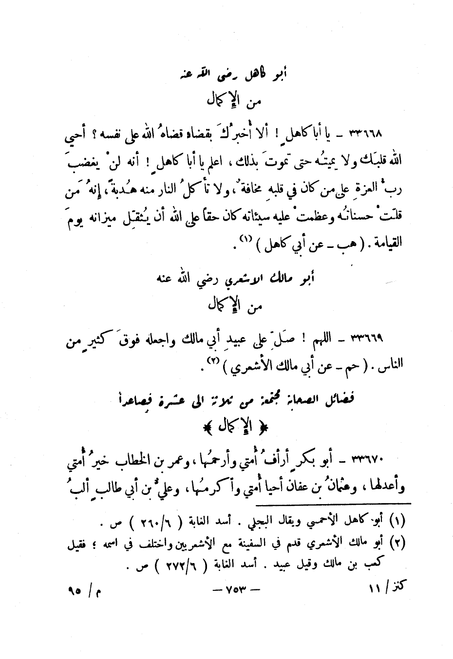 فضائل الصحابة مجتمعة من ثلاثة إلى عشرة فصاعدا