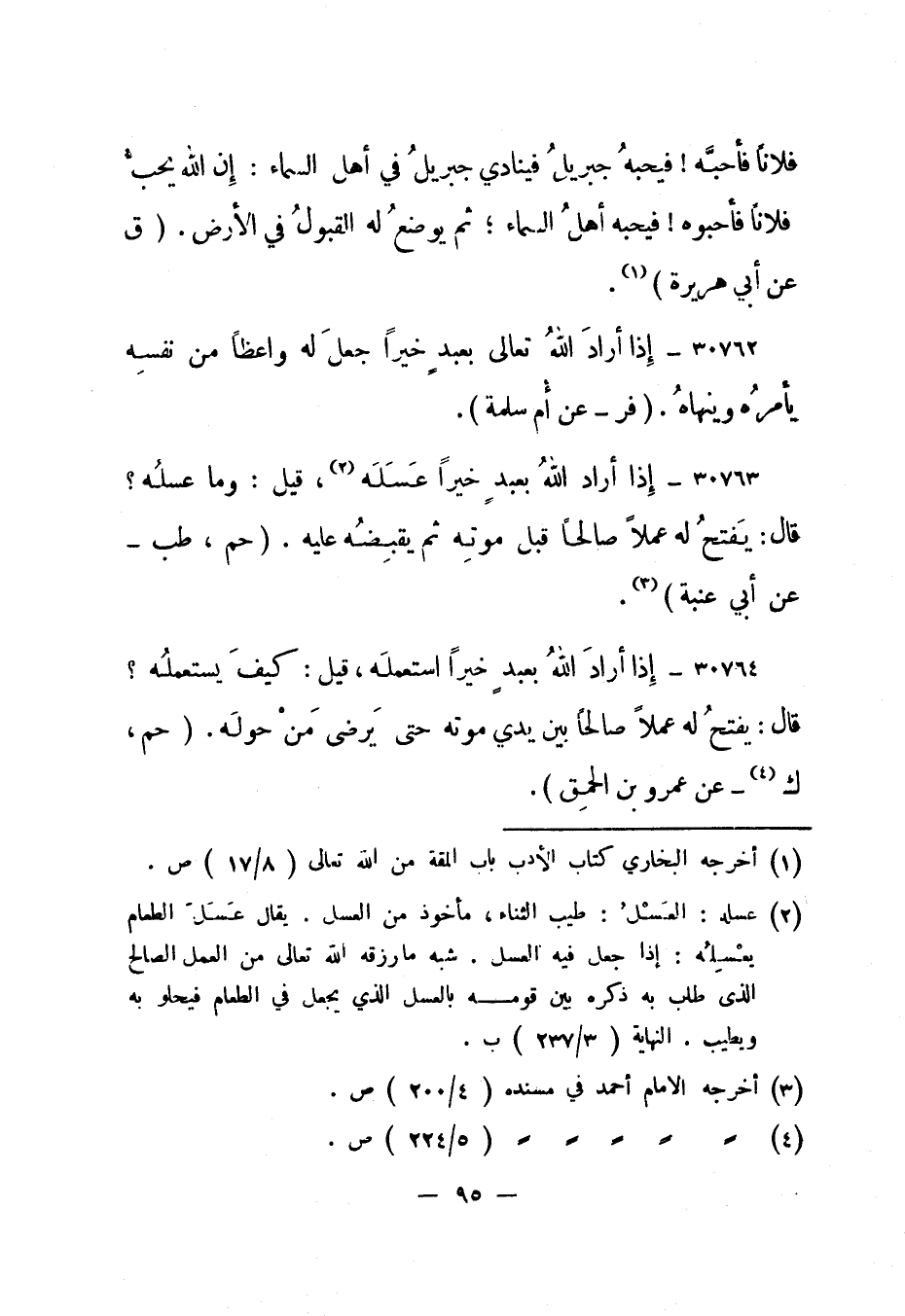 فلانا فأحبه! فيحبه جبريل فينادي جبريل في أهل السماء: إن الله يحب فلانا فأحبوه! فيحبه أهل السماء؛ ثم يوضع له القبول في الأرض. "ق عن أبي هريرة" 1.