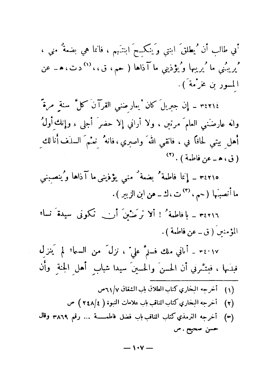 3 أخرجه الترمذي كتاب المناقب باب فضل فاطمة ... رقم 3869 وقال حسن صحيح. ص.