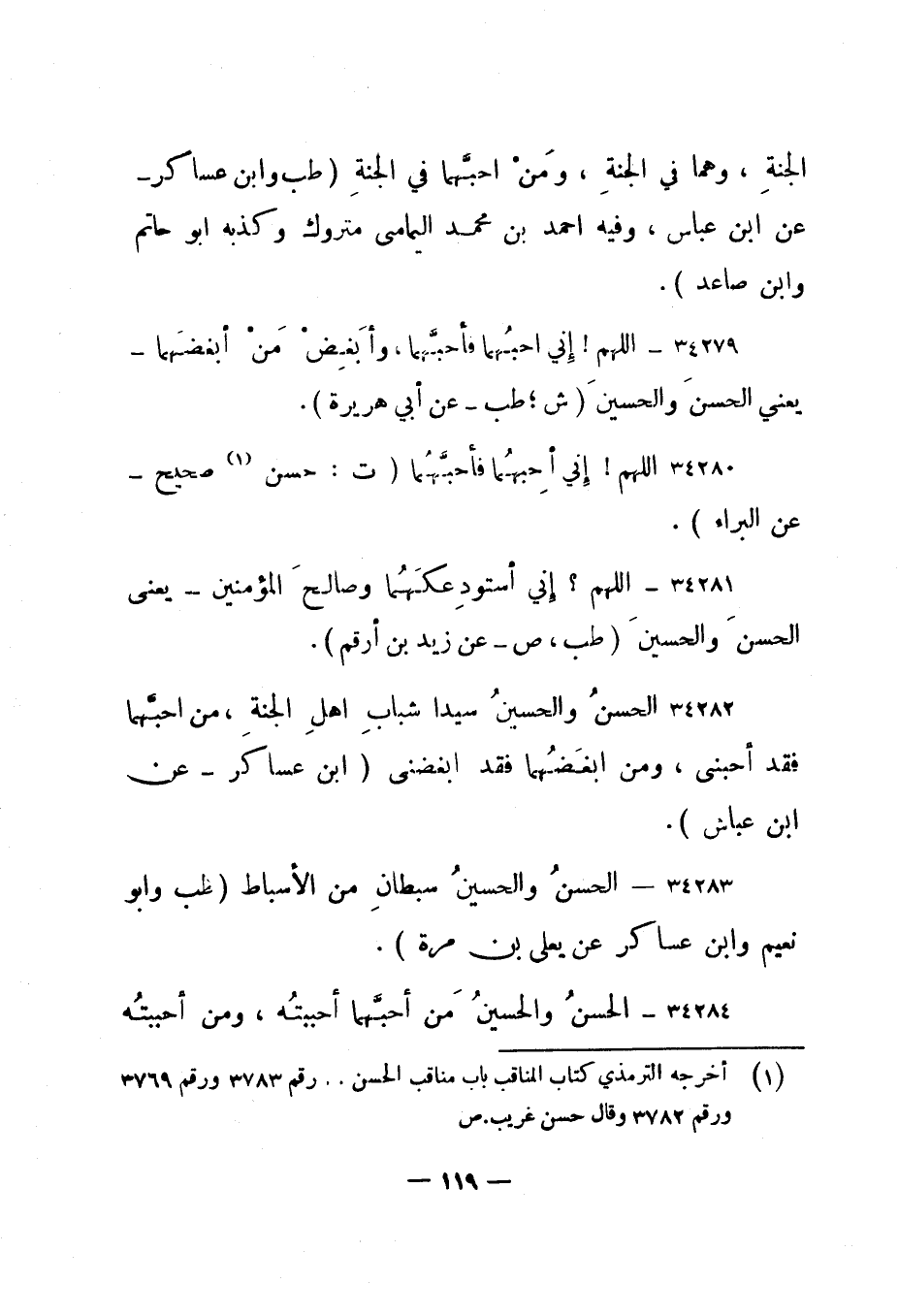 34284- "الحسن والحسين من أحبهما أحببته، ومن أحببته
