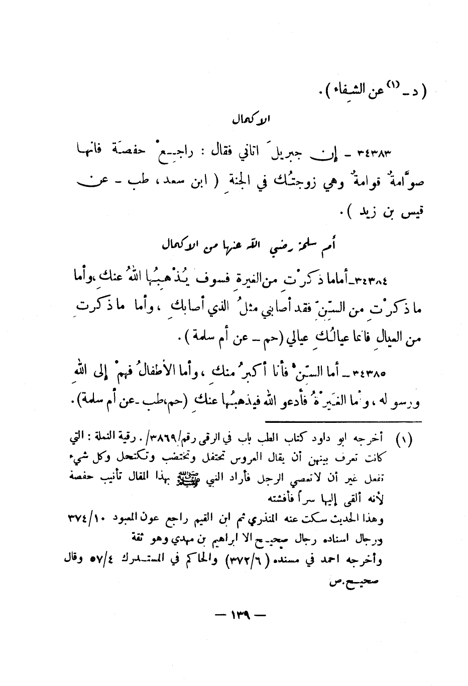 34383- "إن جبريل أتاني فقال: راجع حفصة فإنها صوامة قوامة وهي زوجتك في الجنة." ابن سعد، طب - عن قيس بن زيد".