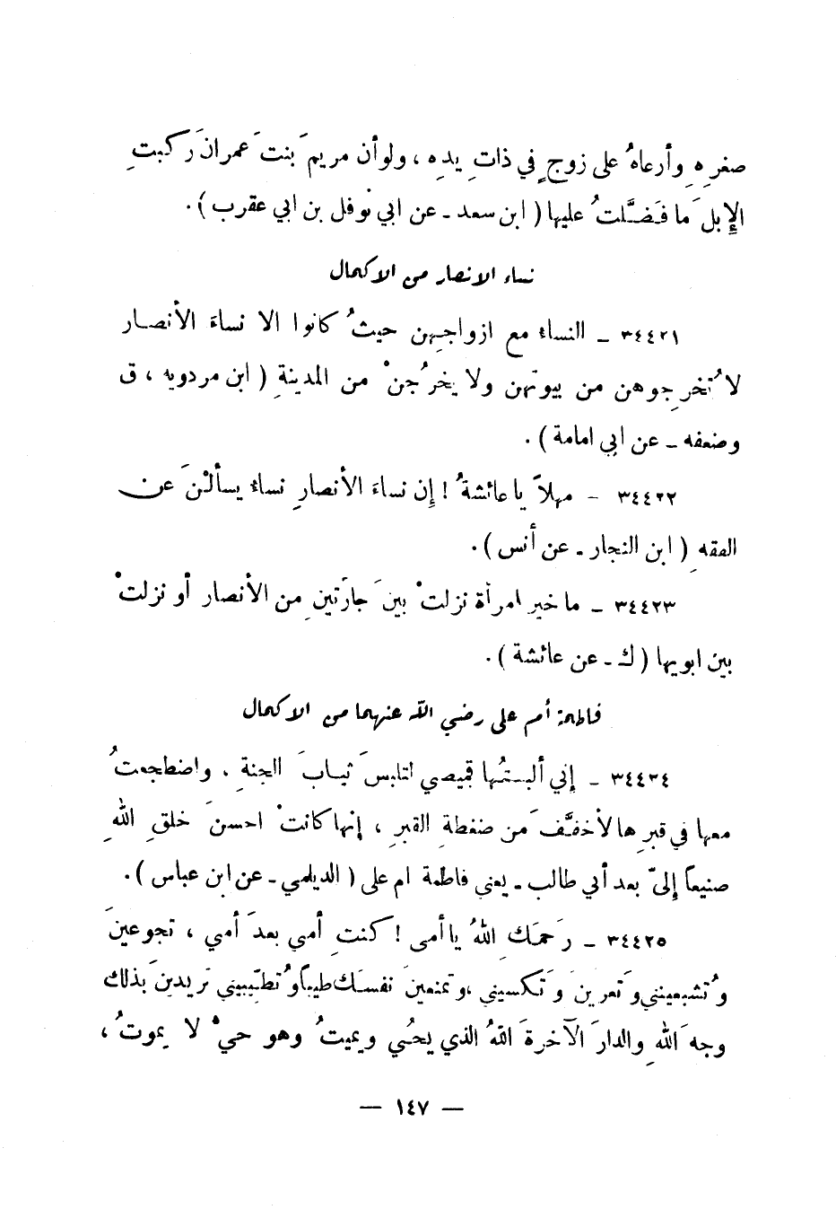 34423- "ما خير امرأة نزلت بين جارتين من الأنصار أو نزلت بين أبويها." ك - عن عائشة".