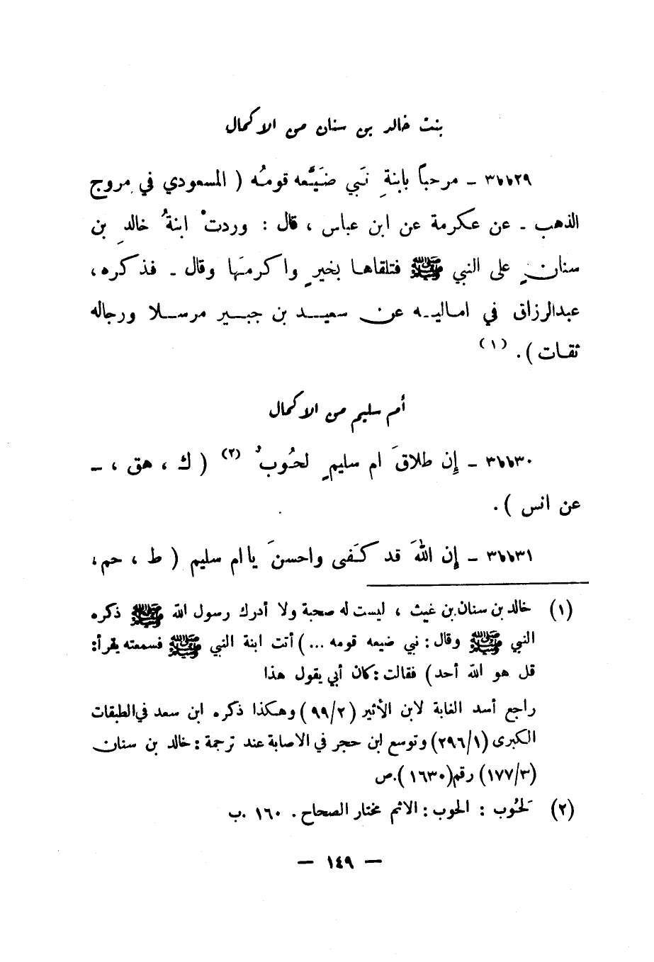 بنت خالد بن سنان من الإكمال