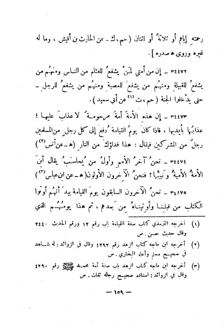 34474- "نحن آخر الأمم وأول من يحاسب يقال أين الأمة الأمية ونبيها؟ فنحن الآخرون الأولون." هـ - عن ابن عباس 3 ".