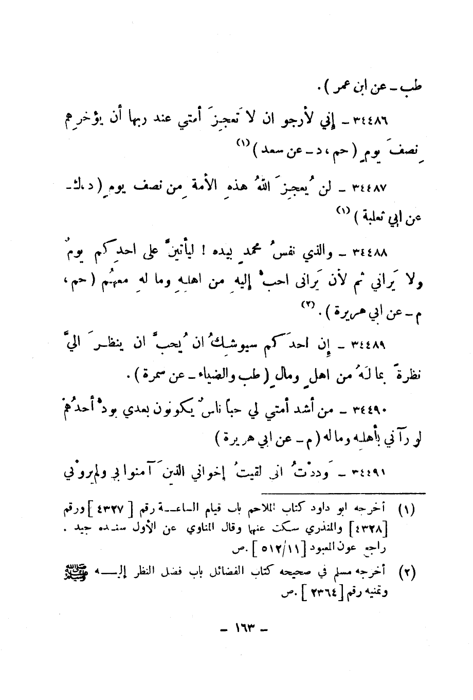 34487- "لن يعجز الله هذه الأمة من نصف يوم. " د، ك - عن أبي ثعلبة". 1