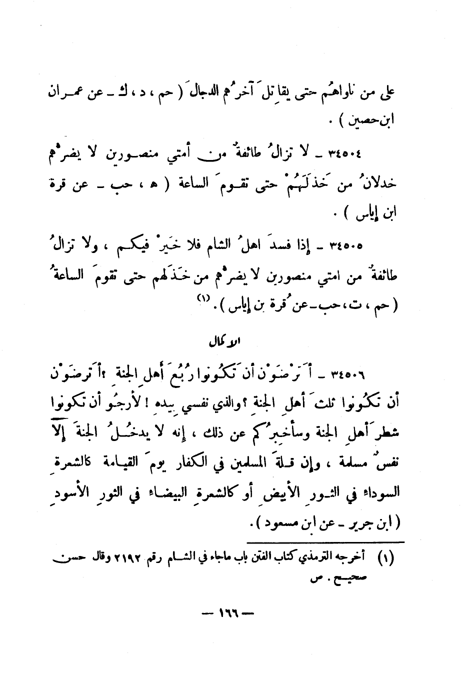 1 أخرجه الترمذي كتاب الفتن باب ما جاء في الشام رقم 2192 وقال حسن صحيح. ص.