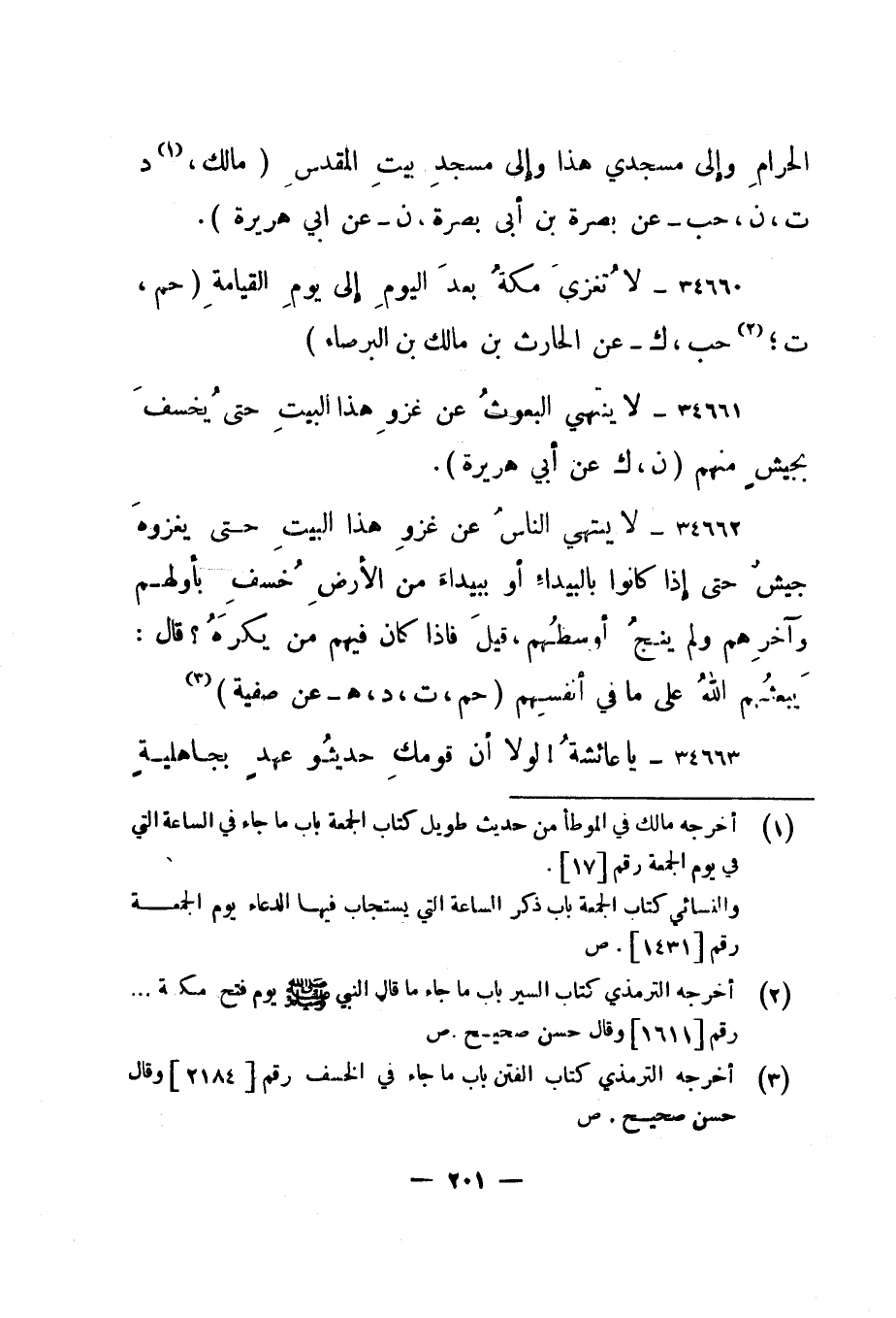 34660- "لا تغزى مكة بعد اليوم إلى يوم القيامة. " حم، ت؛ 2 حب، ك - عن الحارث بن مالك بن البرصاء".