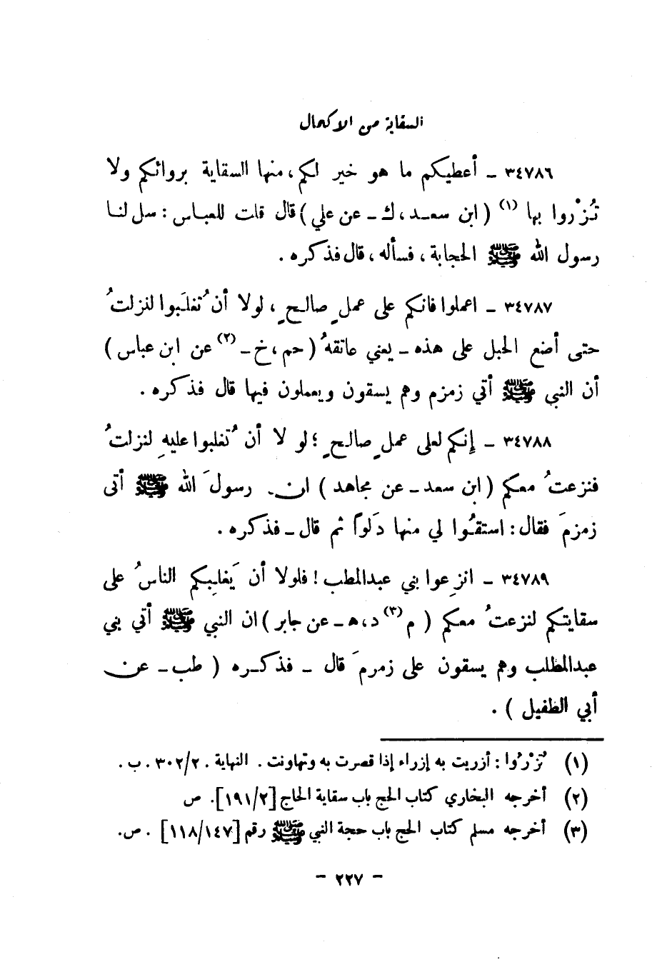 34789- "انزعوا بني عبد المطلب! فلولا أن يغلبكم الناس على سقايتكم لنزعت معكم. " م 3 د، هـ - عن جابر" أن النبي صلى الله عليه وسلم أتي بني عبد المطلب وهم يسقون على زمزم قال - فذكره. "طب - عن أبي الطفيل".