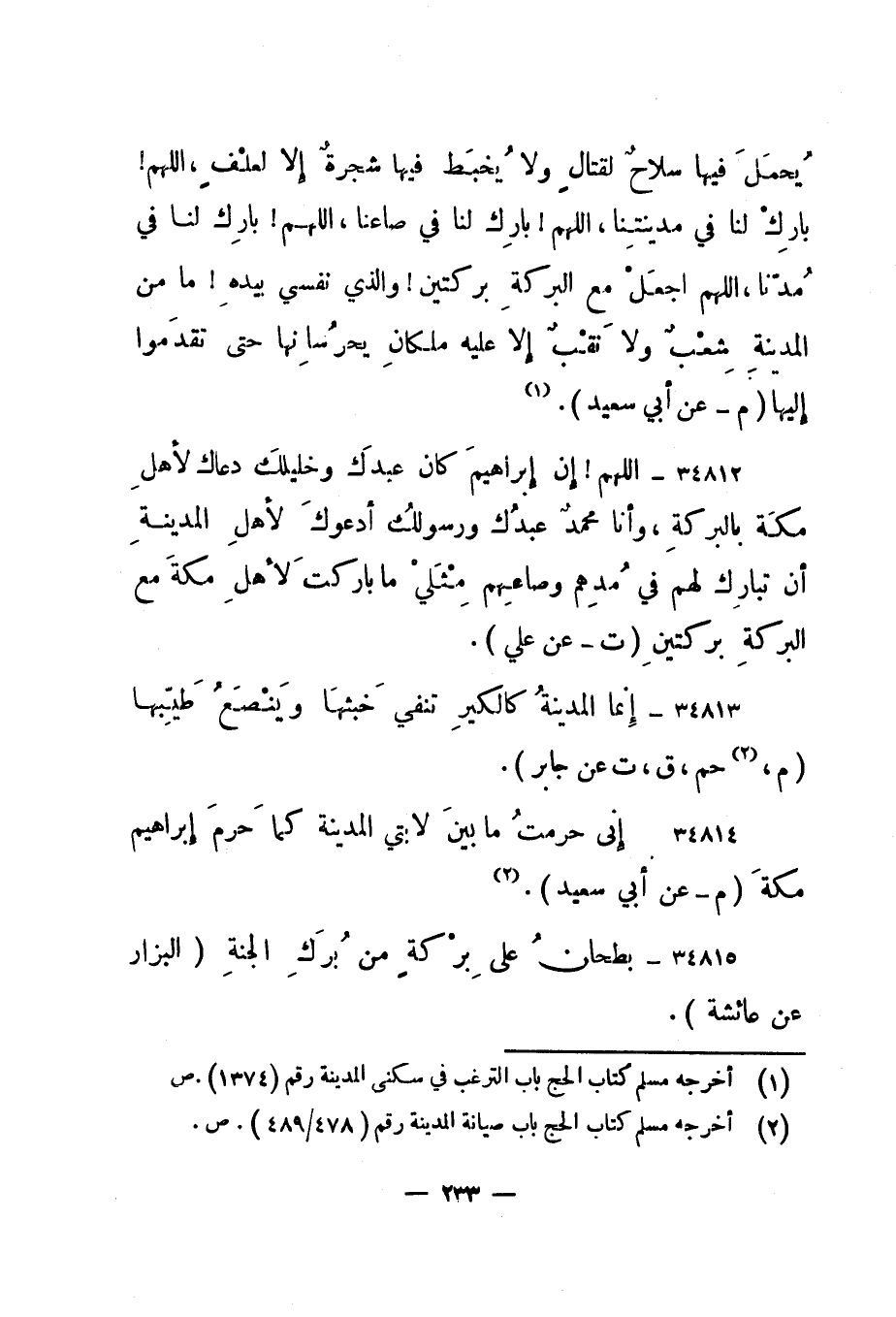 34814- "إني حرمت ما بين لابتي المدينة كما حرم إبراهيم مكة. " م - عن أبي سعيد". 2